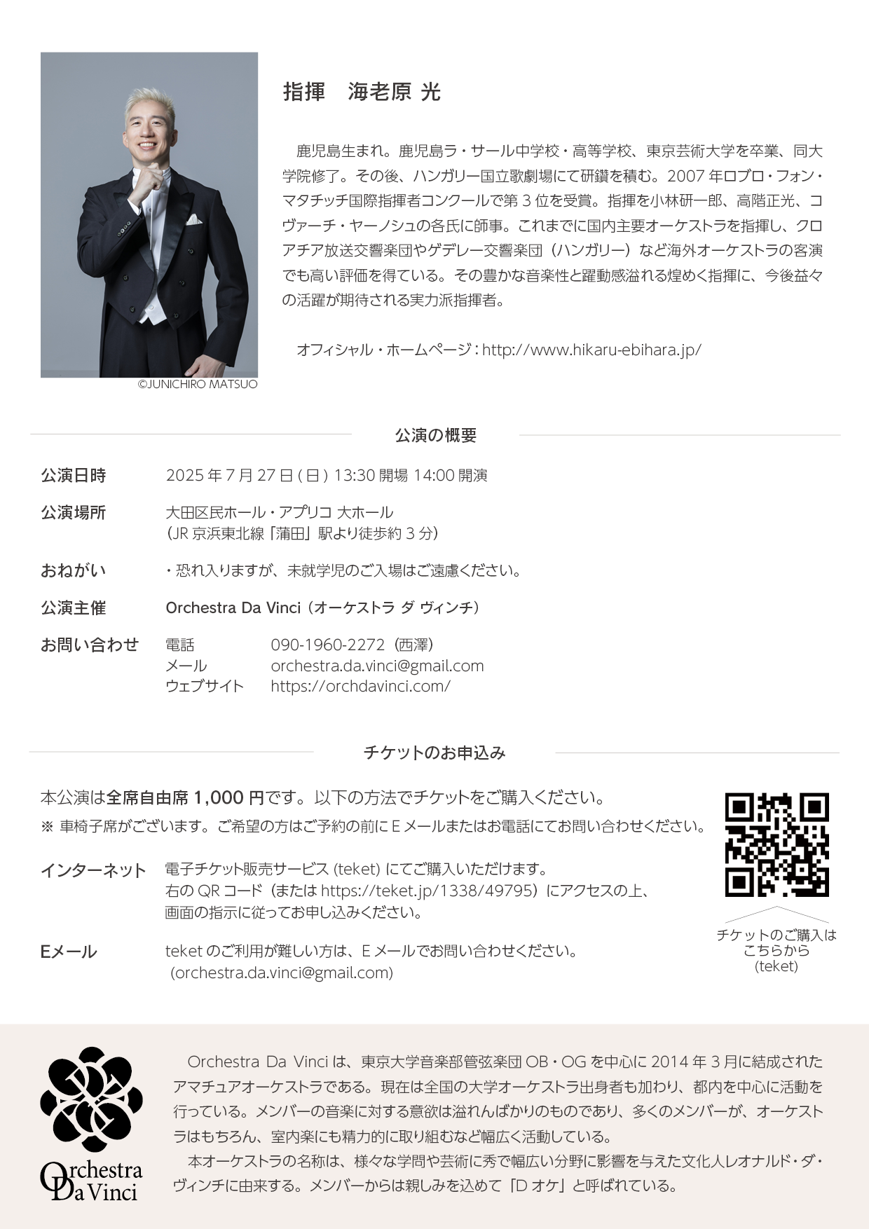 ご興味をお持ちの方は、orchestra.da.vinci [アットマーク] gmail.com までお気軽にご連絡ください。